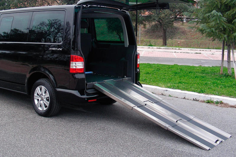 La rampa retráctil RT2 se integra perfectamente al diseño del coche. Sin la persona con discapacidad a bordo, la rampa permite mantener invariados los asientos originales – 2 delanteros y 3 posteriores inclusive la visión trasera se mantiene igual, así como el espacio en el maletero. Cuando la persona con discapacidad se encuentra a bordo, nuestra solución permite el uso de 3 plazas, más la persona en silla de ruedas, cuyo acceso y posicionamiento son sencillos y totalmente seguros. Esta solución personalizada proporciona la máxima visibilidad al pasajero en silla de ruedas, gracias al alto techo con cristales. Ofrece la máxima seguridad a través de un sistema de Unwin de anclaje de la silla en 4 puntos, además del cinturón de seguridad de 3 puntos para el pasajero con discapacidad. Es muy fácil de sacar y guardar.